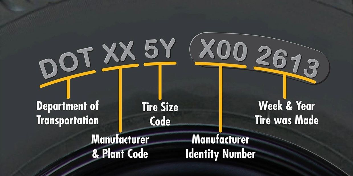 Every tire has a date code stamped on the sidewall, which is the date the tire was manufactured. The date code is usually at the end of the DOT I.D. and is a 4 digit number. The first two numbers indicate the week (out of 52) and the last two digits indicate the year. For example, 3409 means the tire was manufactured the 34th week of 2009.